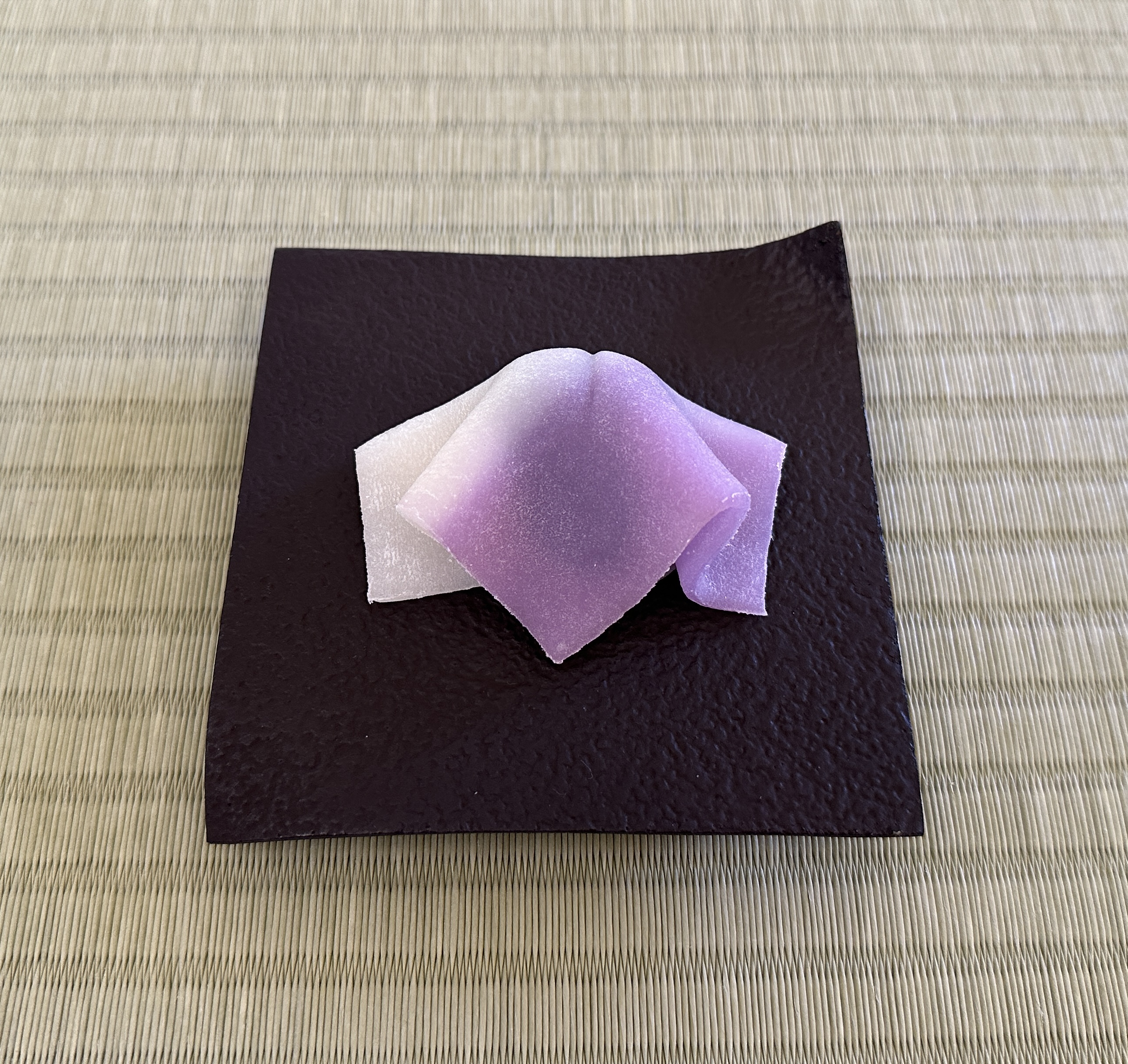 - Orient the square on a diagonal such that the purple is on the upper-right side (appears on top right when viewing). Fold over the naka-an.
