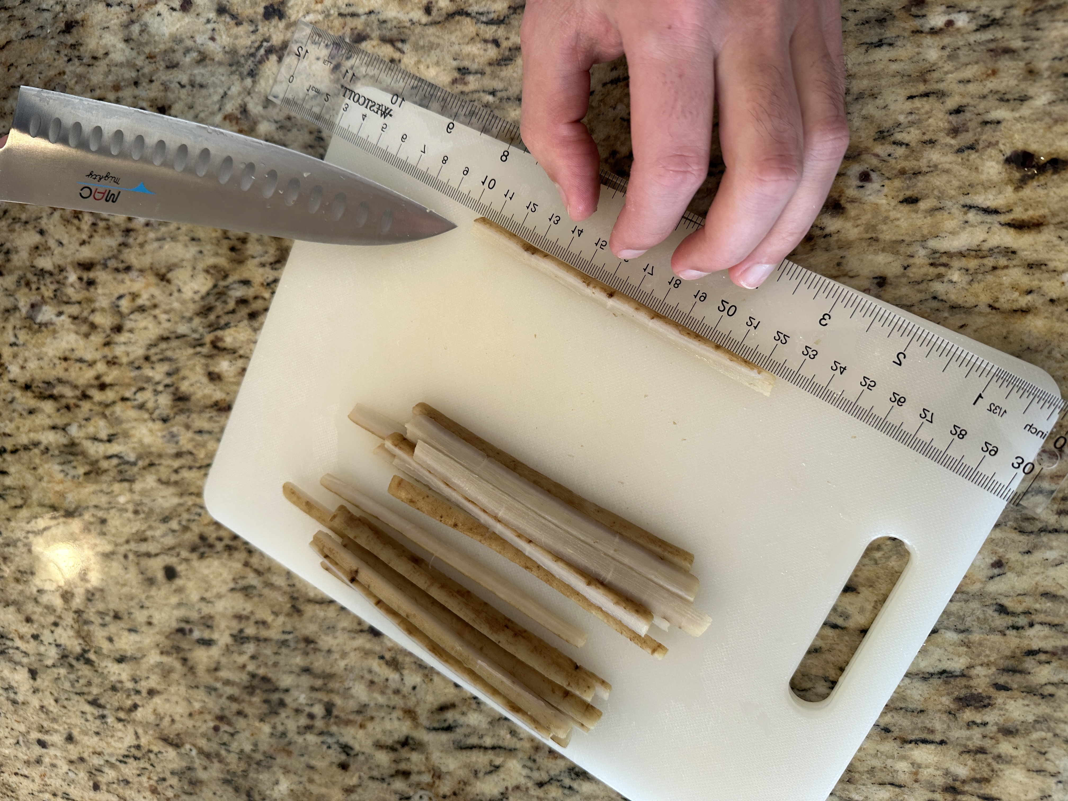 When you’re cutting off the triangle point, don’t cut it too thin! This is what causes curling! It needs to keep some girth while it’s boiling otherwise it’ll curl like that.