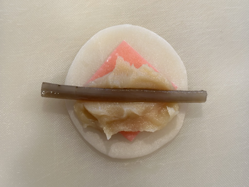 - Place a 20g portion of miso-an just below center. Don’t spread or anything.