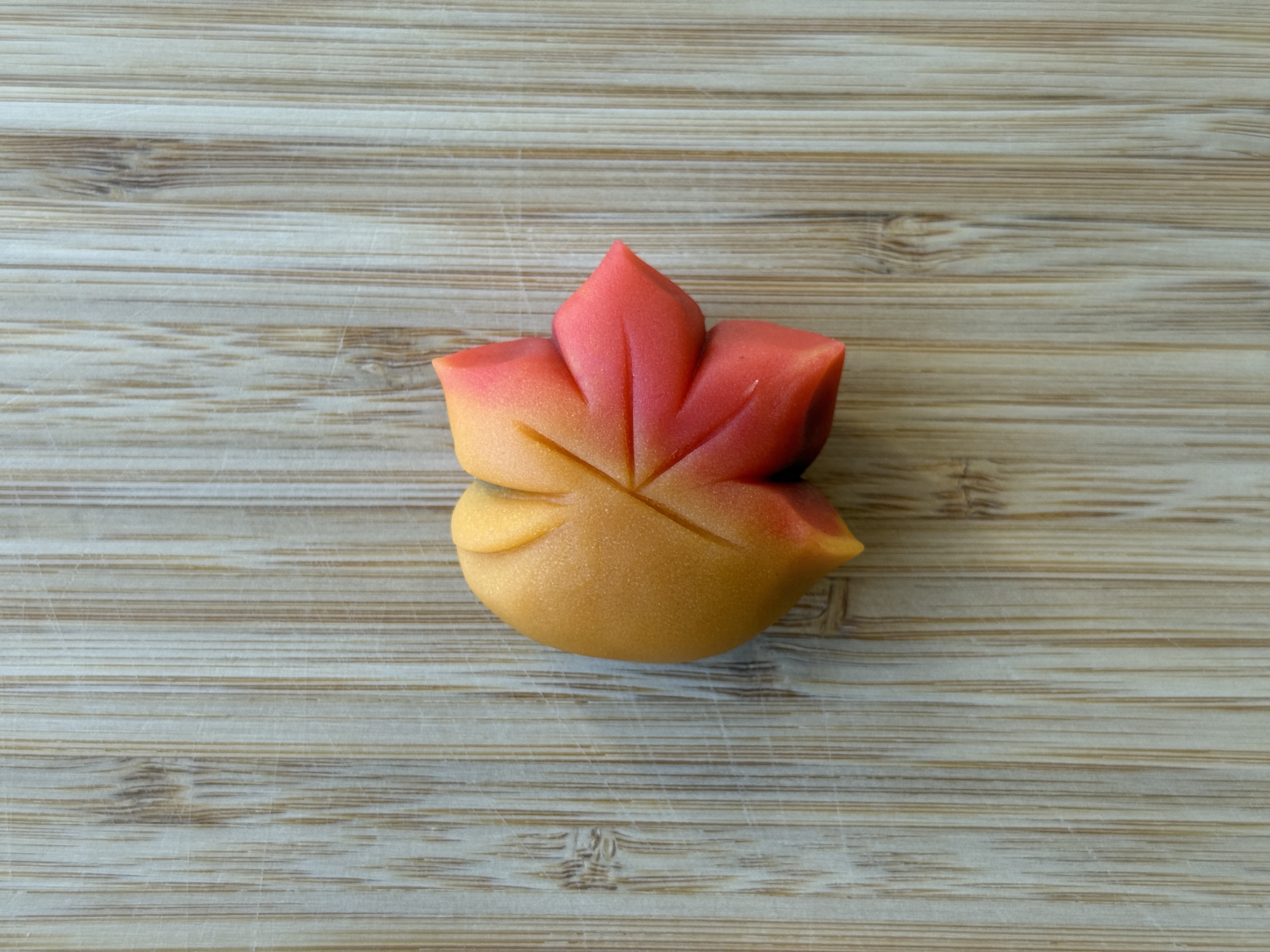 Konashi started to dry as we worked with it, then by the time we got to making the veins, the konashi tore instead of cleanly indenting. Putting it back under a damp paper towel for a bit helped.