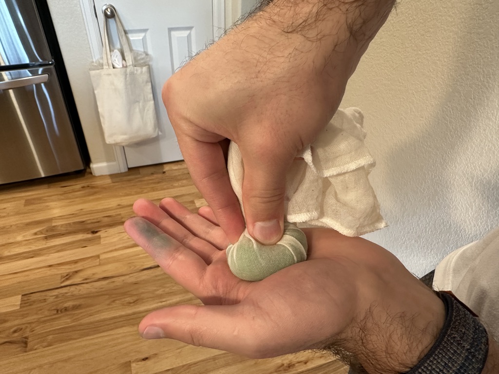 - Used a fine cheesecloth instead of flour sack cloth for the shibori. It worked great! Some slight mesh imprint visible, but not much.