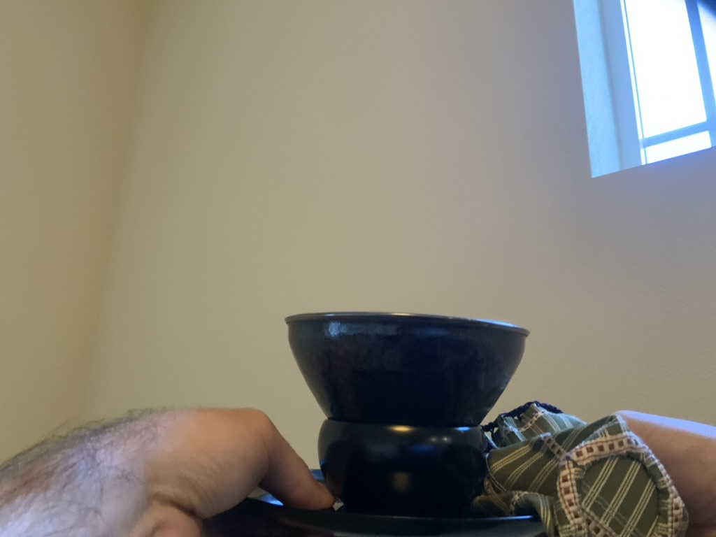 - While your hand is there, take the chakin and pinch the side of the bowl like in Shin no Gyo to do the last dump with L.